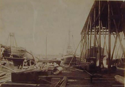 Op de fotos zie je hoe het schip in aanbouw was in 1883.